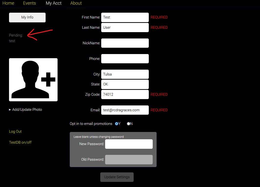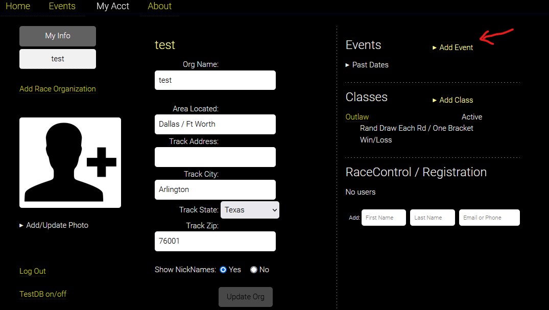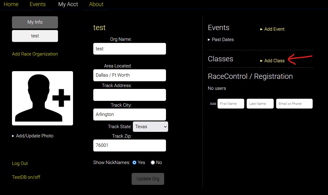 1. Under the My Acct tab, click "Add Race Organization"